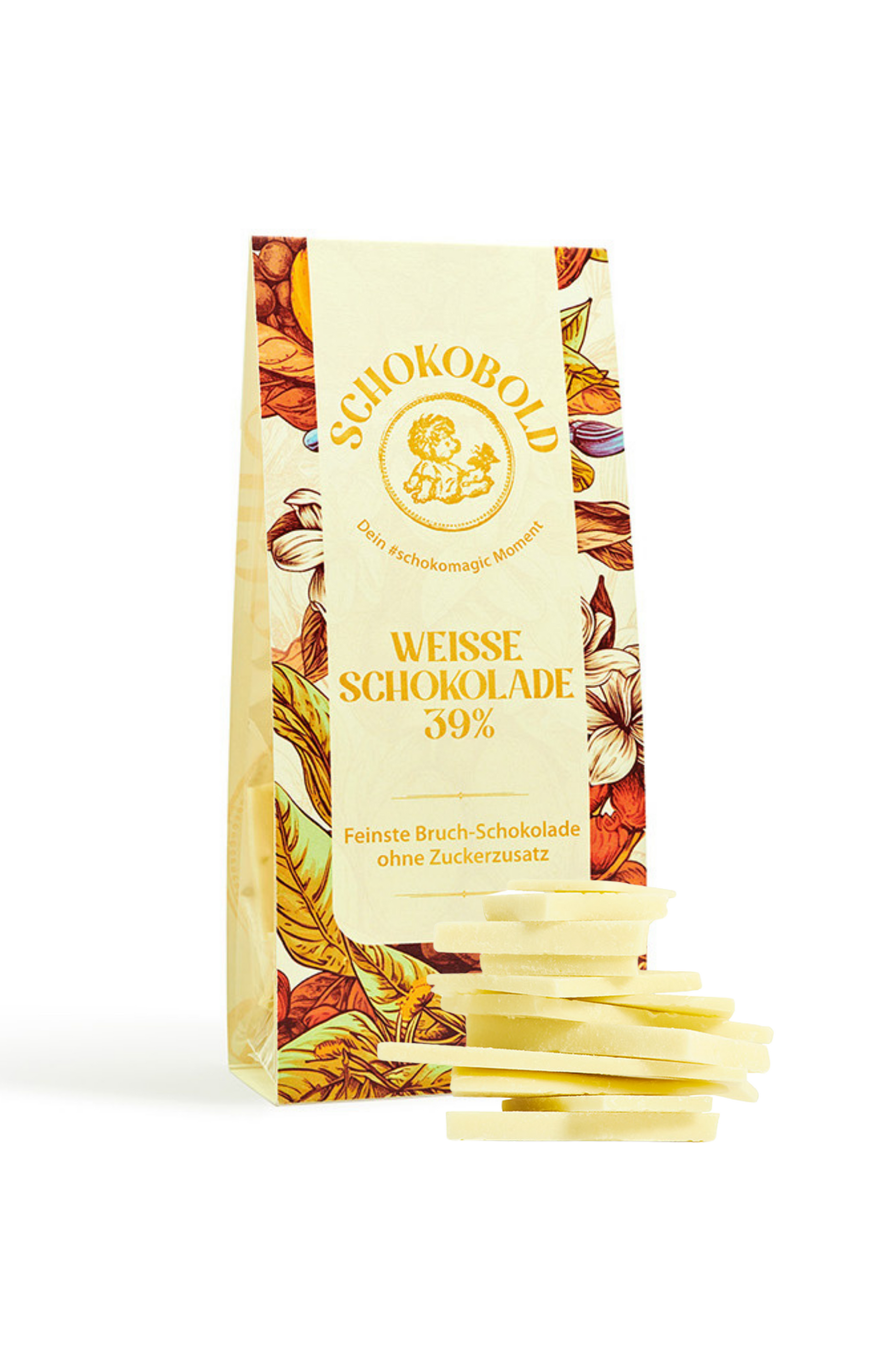 Weiße Schokolade mit einem Kakaobutter Anteil von 39% bietet ein